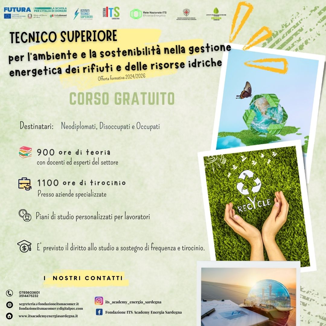- Tecnico Superiore per l’ambiente e la sostenibilità nella gestione energetica dei rifiuti e delle risorse idriche - GREEN RECYCLE APPLICANT.