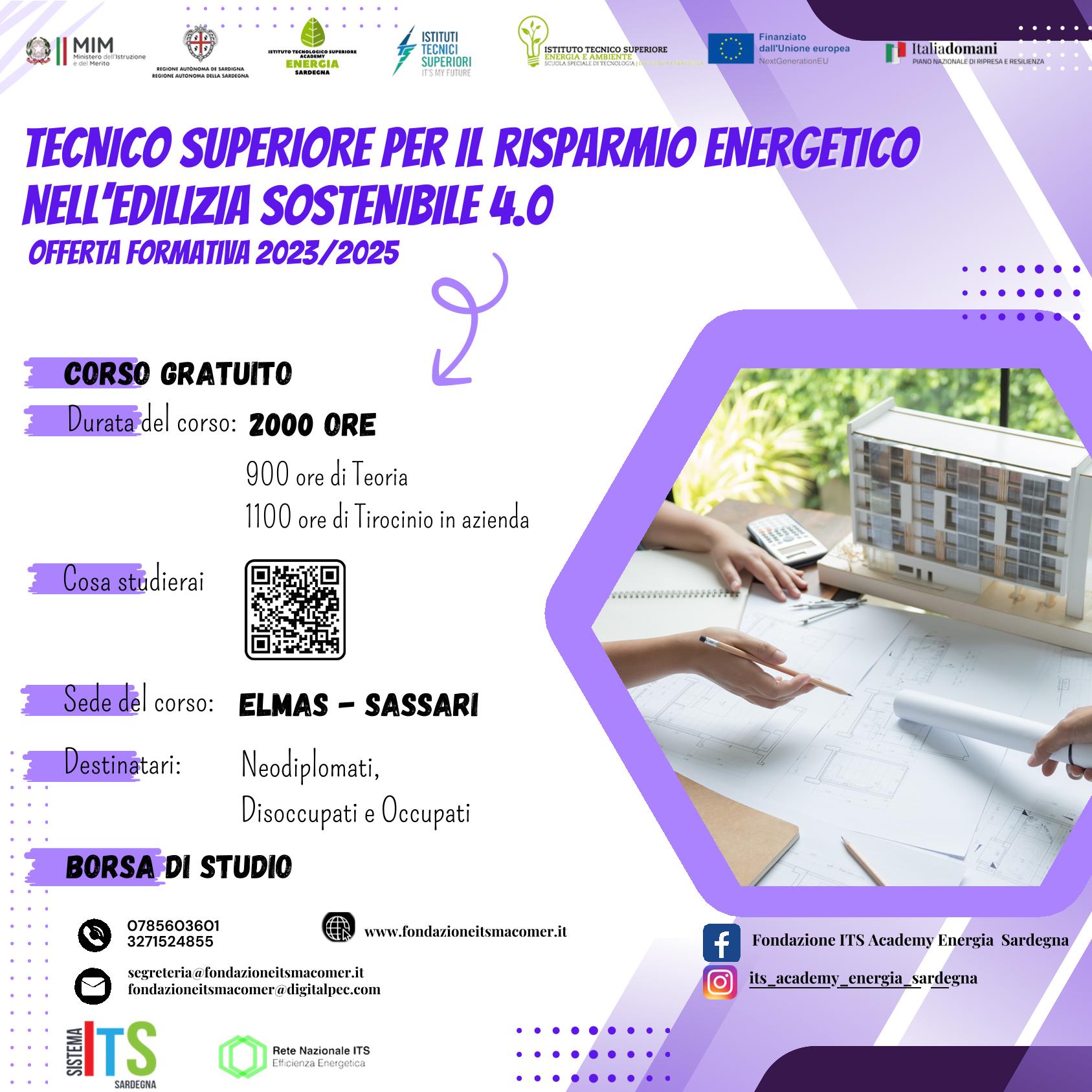 Il Tecnico Superiore per l’efficienza energetica nell’edilizia sostenibile compie valutazioni sulle caratteristiche morfologiche di edifici, manufatti e infrastrutture. Effettua scelte sui materiali, sul consumo di risorse energetiche e ambientali, sul ciclo di vita, sugli impatti ambientali associati alle opere. Gestisce i processi di certificazione degli edifici secondo protocolli e standard riconosciuti a livello nazionale e internazionale. Applica sistemi e modelli per la digitalizzazione del processo edilizio.