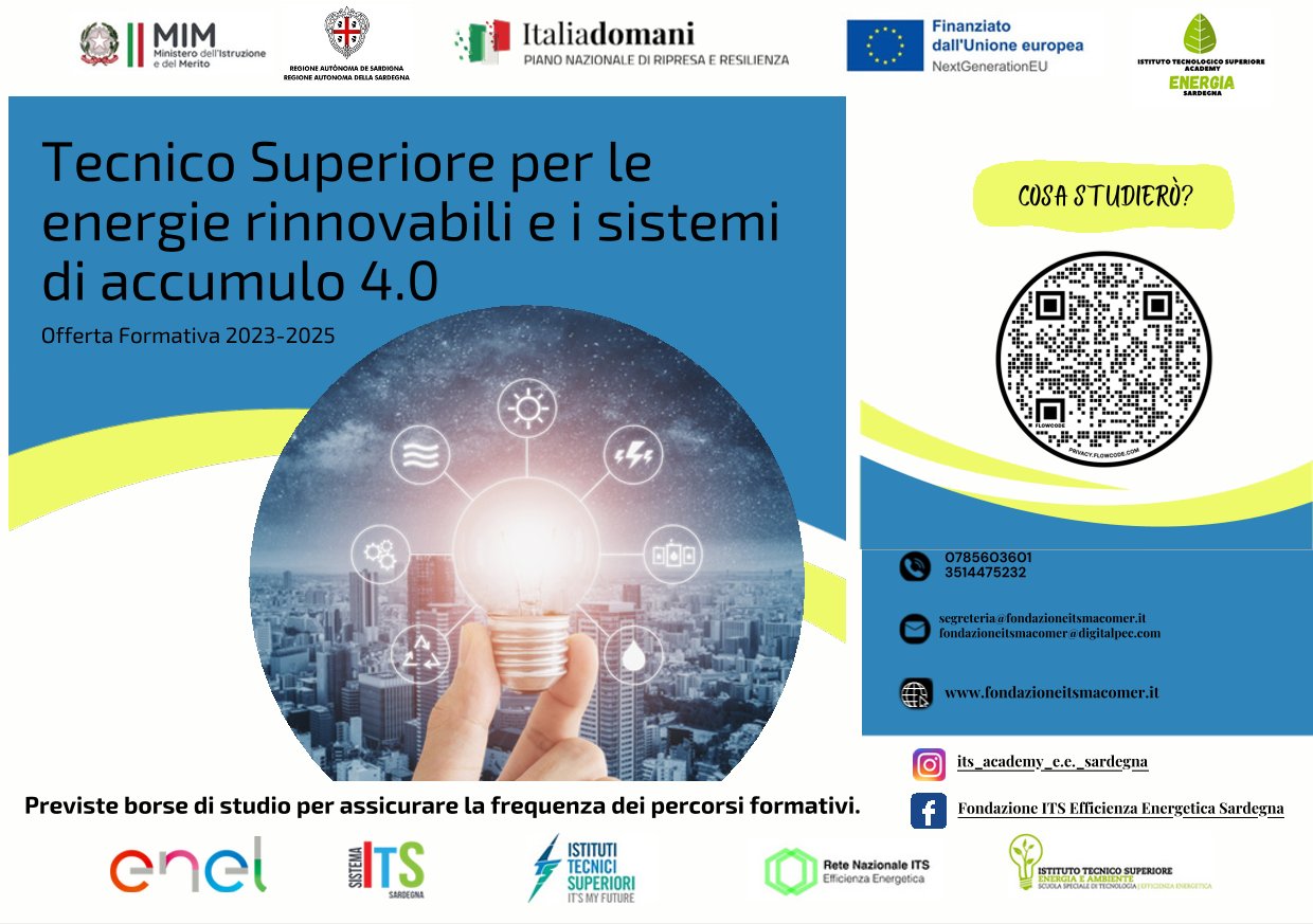 Il Tecnico Superiore per l’energia sostenibile lavora nel settore della produzione di energia. Opera nelle fasi della generazione dell’energia, dall’approvvigionamento delle materie prime ‐ tradizionali e rinnovabili ‐ alla trasformazione dell’energia primaria fino all’immissione dell’energia prodotta nella rete e alla successiva distribuzione. Collabora alla costruzione di impianti. Rileva e analizza dati energetici e ambientali, compiendo attività di metering.